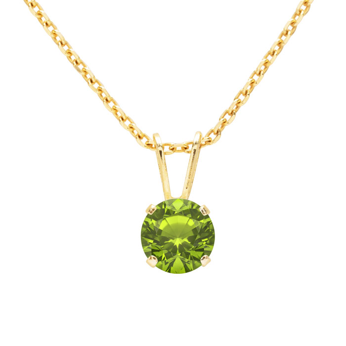3/4 Carat Peridot Solitaire Necklace In Yellow Gold With Free Chain