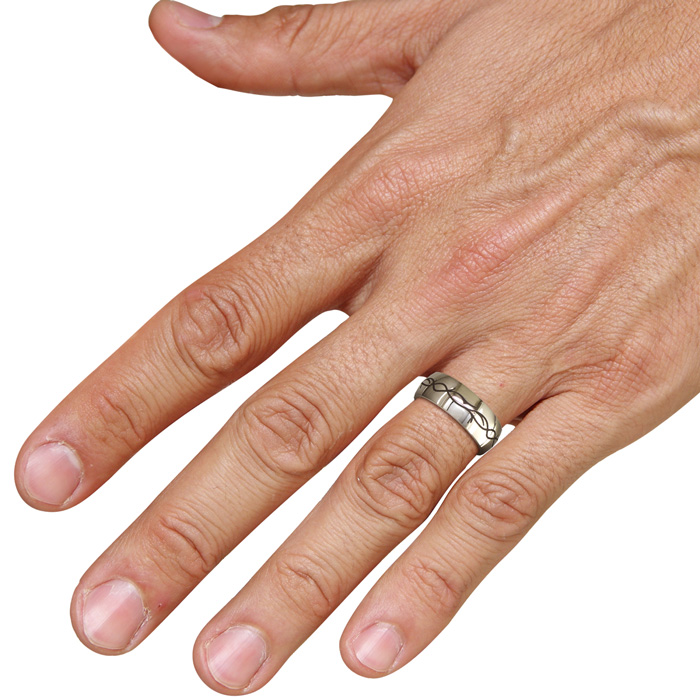 Men who prefer rugged wedding bands, industrial-inspired rings, or masculine engraved wedding bands will appreciate the distinctive design and comfortable fit of this ring. Unlike heavier metals, titanium offers long-lasting performance without sacrificing comfort, making it a popular choice for modern men’s jewelry. This ring is available in sizes 7.5 through 13, ensuring a great fit for most men.