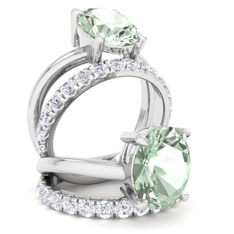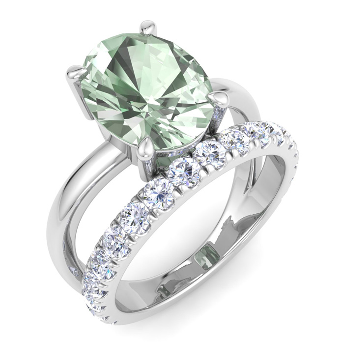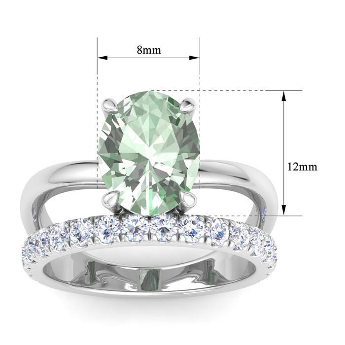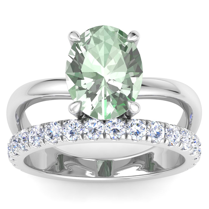 2 3/4 Carat Oval Shape Green Amethyst and Halo Diamond Ring Plus Band In 14 Karat White Gold
