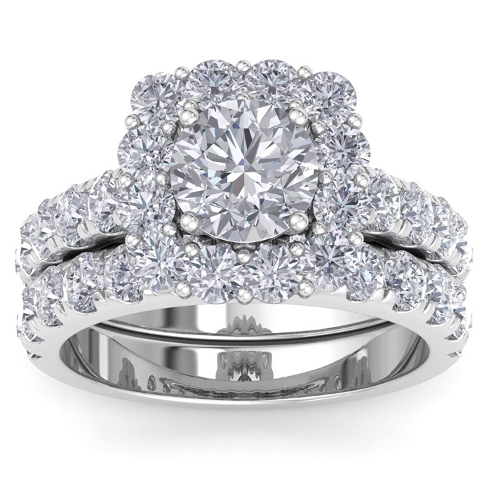 3 1/2 Carat Halo Diamond Bridal Set In 14K White Gold