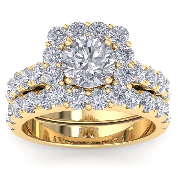 3 1/2 Carat Halo Diamond Bridal Set In 14K Yellow Gold