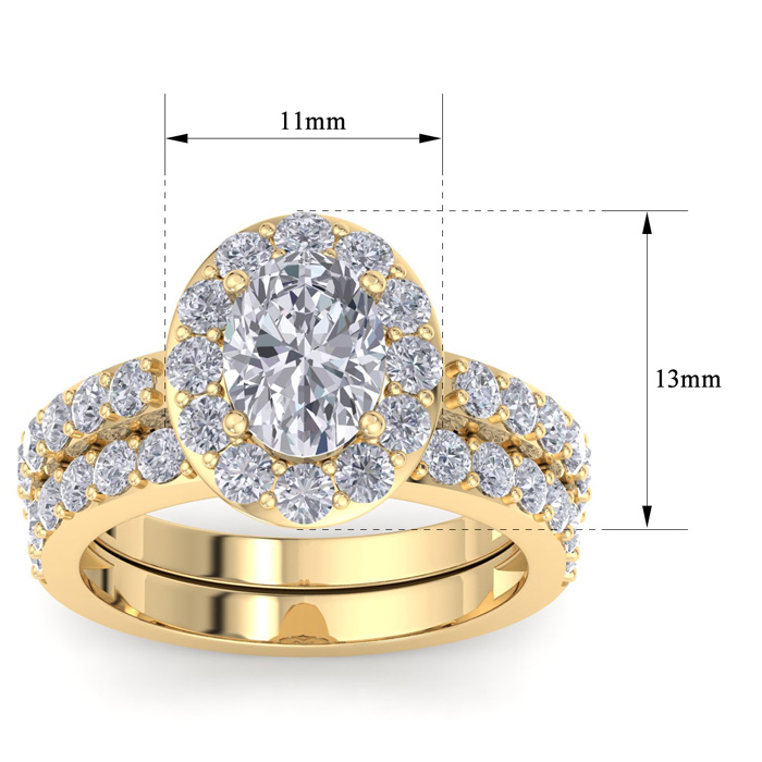 3 1/4 Carat Oval Shape Halo Diamond Bridal Set In 14K Yellow Gold