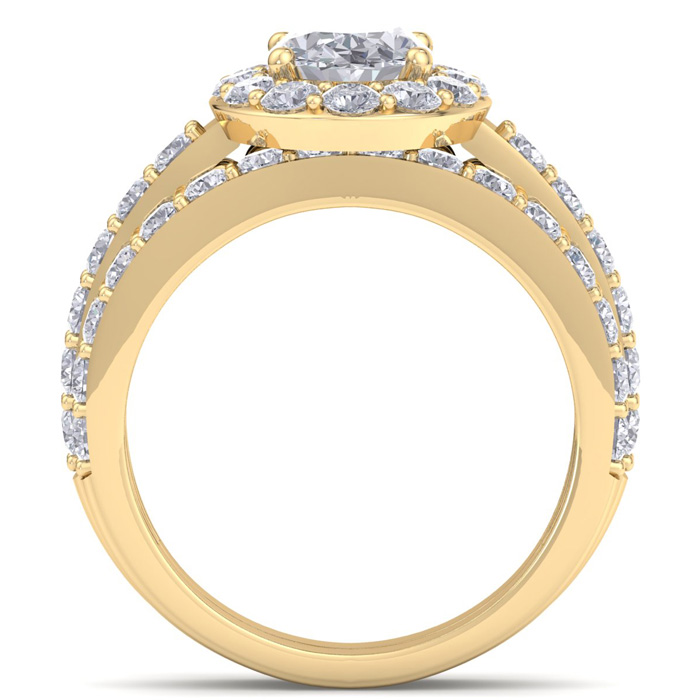3 1/4 Carat Oval Shape Halo Diamond Bridal Set In 14K Yellow Gold