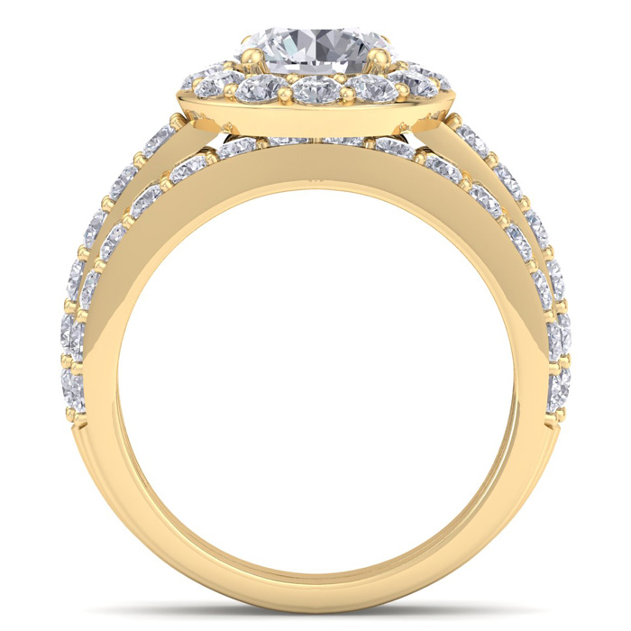 3 1/4 Carat Round Shape Halo Lab Grown Diamond Bridal Set In 14K Yellow Gold