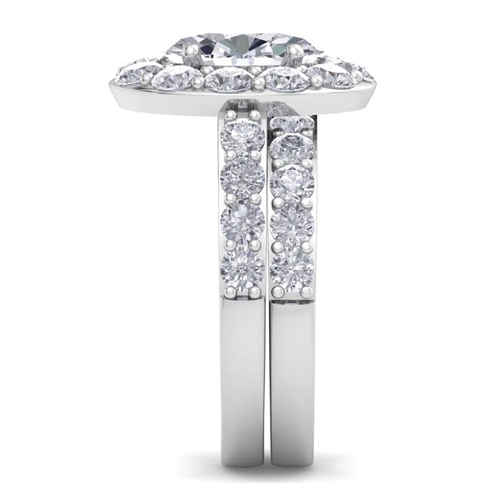 4 1/4 Carat Oval Shape Halo Diamond Bridal Set In 14K White Gold