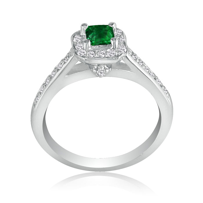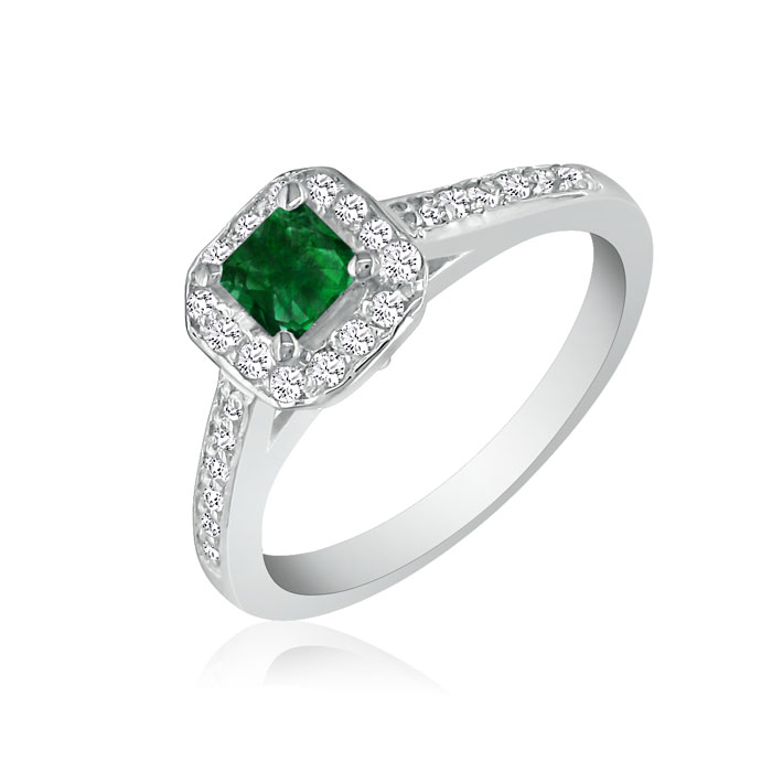 Hansa 2/3 Carat Natural Emerald and Diamond Princess Engagement Ring in 14k White Gold