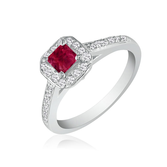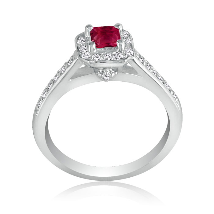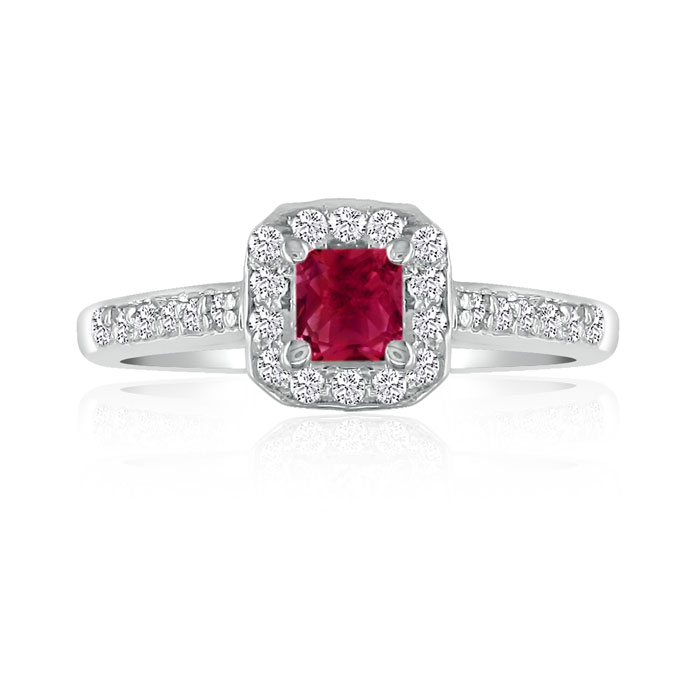 Hansa 2/3 Carat Natural Ruby and Diamond Princess Engagement Ring in 14k White Gold