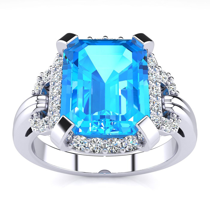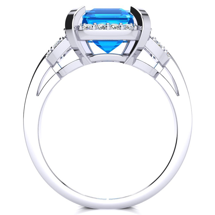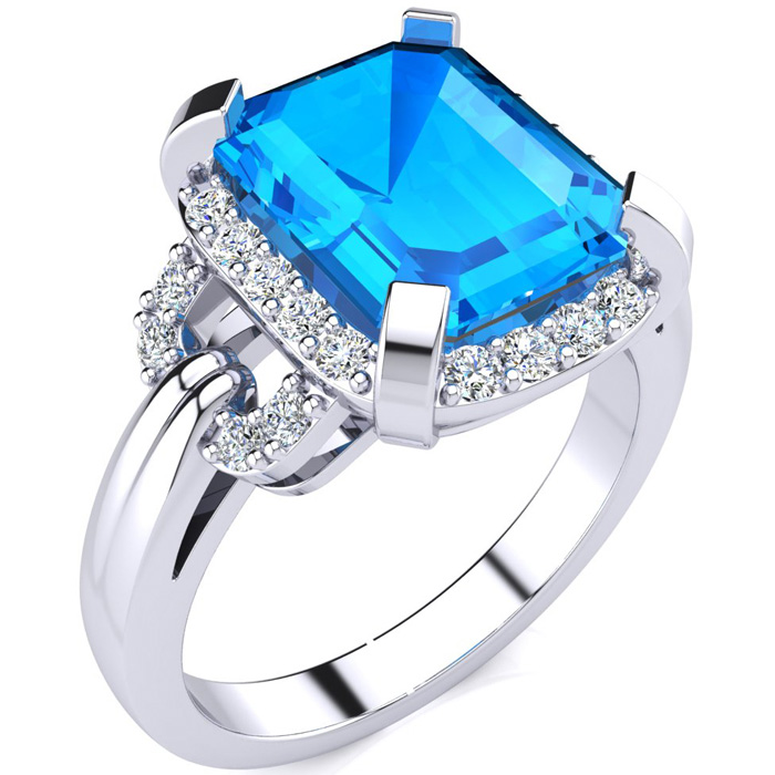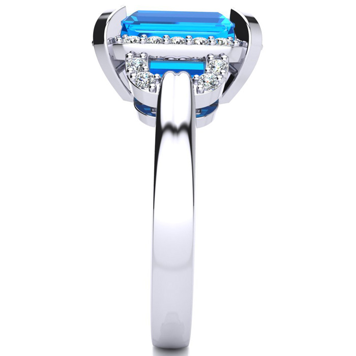 Interlocking 3.25ct Blue Topaz and Diamond Ring in 14k White Gold
