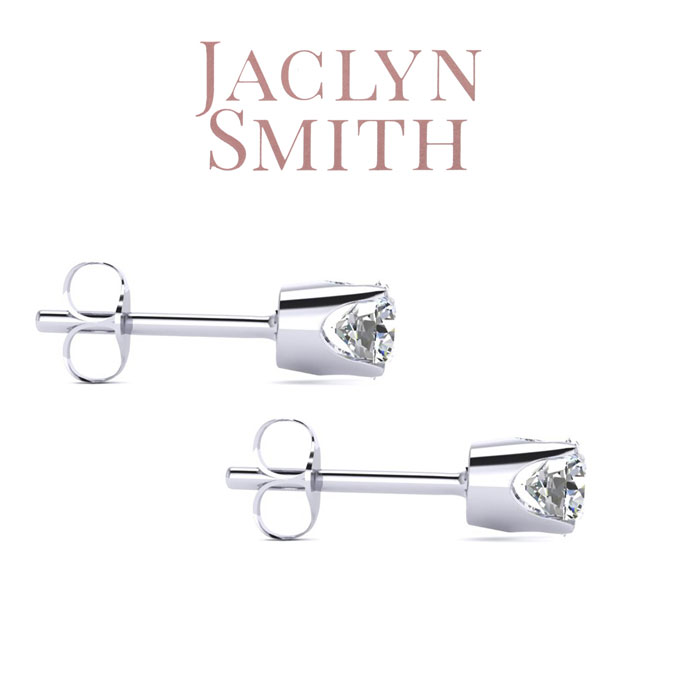 Jaclyn Smith 1/2 Carat Round Moissanite Stud Earrings in White Gold