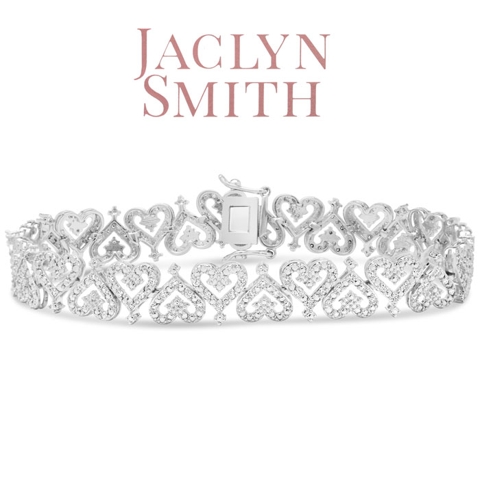 Jaclyn Smith 1 Carat Sparkling Moissanite Bracelet With Hearts, 7 Inches