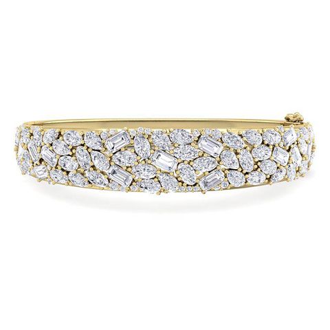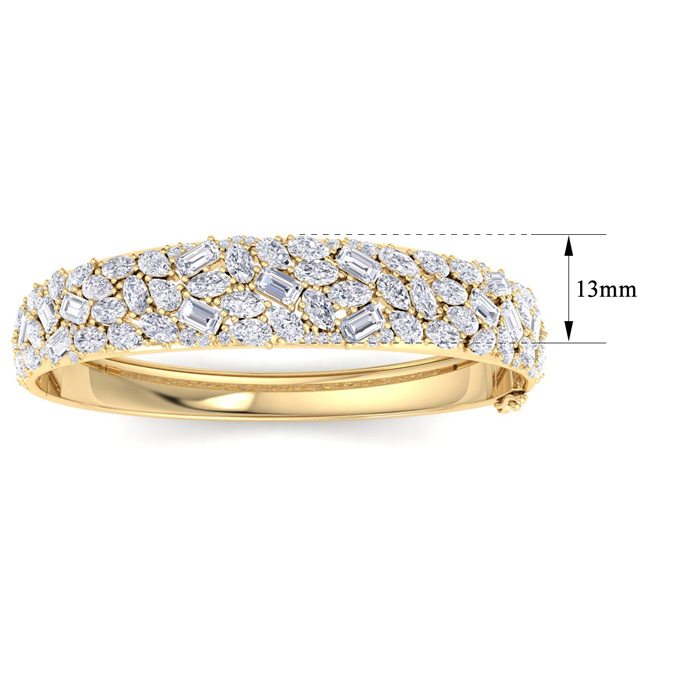 13 Carat Lab Grown Diamond Fancy Bangle Bracelet In 14 Karat Yellow Gold, 7 Inches