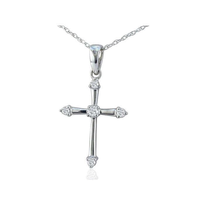 0.05 Carat Diamond Cross Necklace In Sterling Silver With Free Chain, 18 Inches