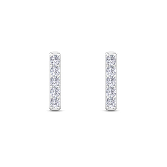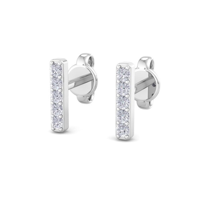 These diamond earrings feature 10 sparkling lab grown diamonds adorning a bar. Total carat weight is 0.07 carats. Diamond color is G-H, diamond clarity is VS. These earrings are in sterling silver and have comfortable and secure post with friction backs.
