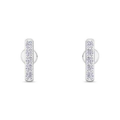 These diamond earrings feature 10 sparkling lab grown diamonds adorning a bar. Total carat weight is 0.07 carats. Diamond color is G-H, diamond clarity is VS. These earrings are in sterling silver and have comfortable and secure post with friction backs.