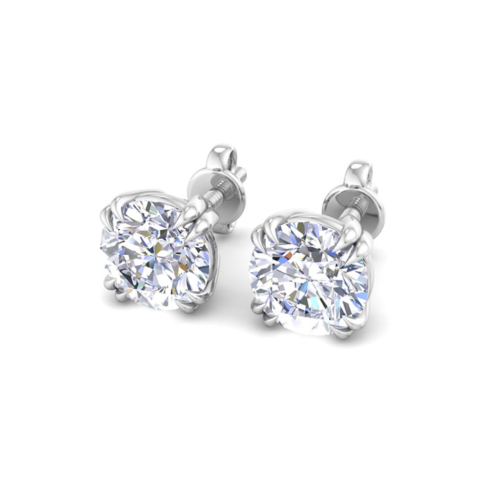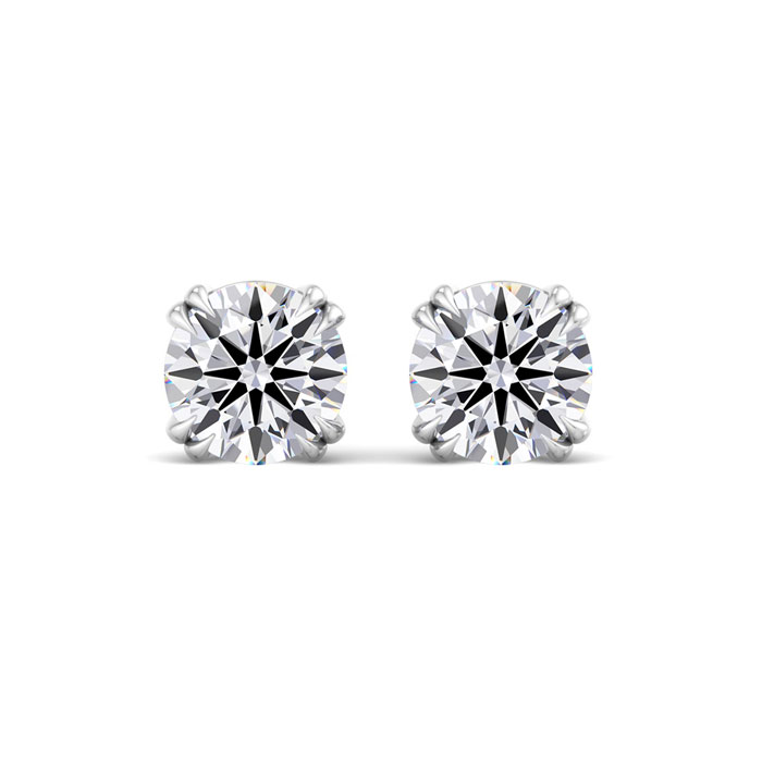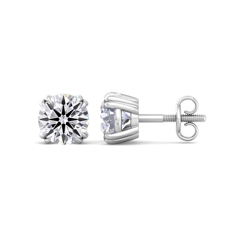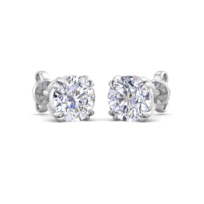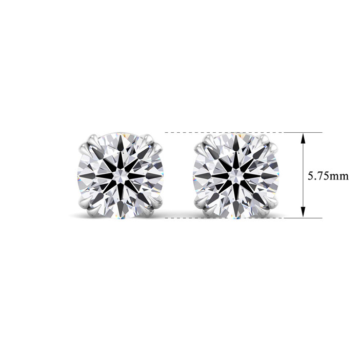 These lab grown diamond earrings feature two 3/4 carat lab grown diamonds in G-H color, VS clarity. Total carat weight is 1 1/2 carats. These earrings are in 14 karat white gold and are in a double prong setting with screwbacks.