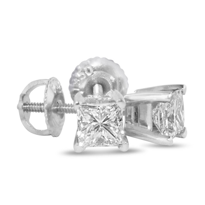 1 1/2 Carat Princess Cut Lab Grown Diamond Stud Earrings In 14 Karat White Gold