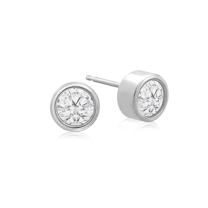 1/2 Carat Bezel Set Lab Grown Diamond Stud Earrings In 14 Karat White Gold