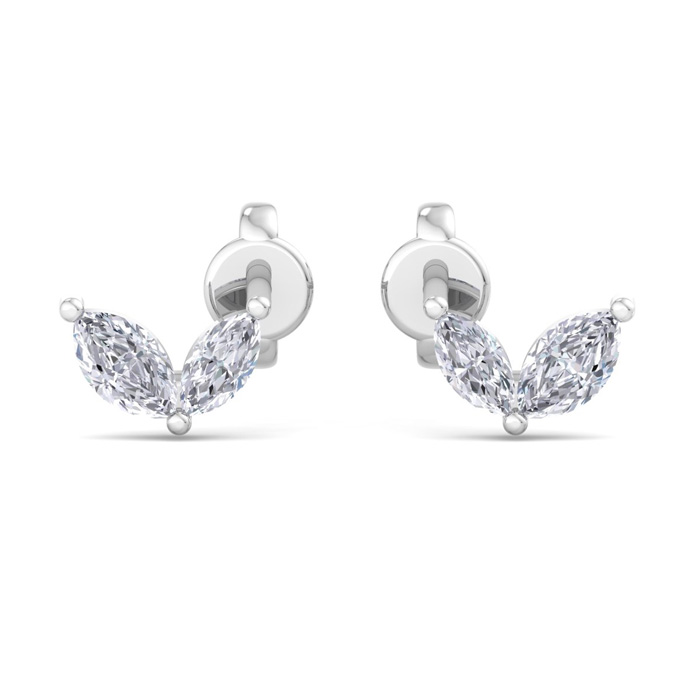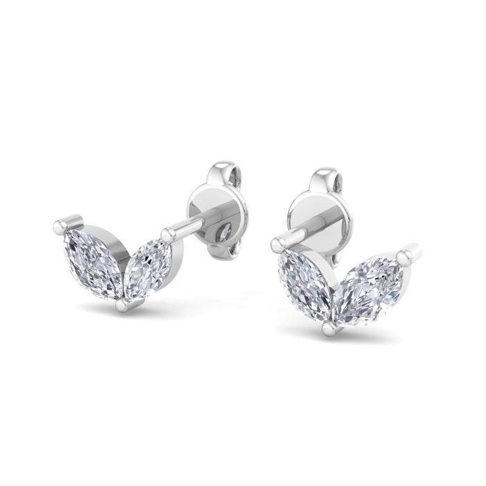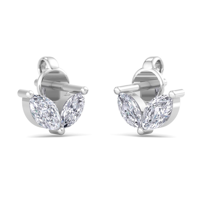These diamond earrings feature 4 sparkling marquise shape lab grown diamonds. Total carat weight is 1/4 carat. Diamond color is G-H, diamond clarity is VS. These earrings are in sterling silver and have comfortable and secure post with friction backs.