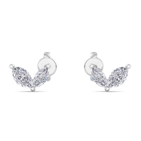 These diamond earrings feature 4 sparkling marquise shape lab grown diamonds. Total carat weight is 1/4 carat. Diamond color is G-H, diamond clarity is VS. These earrings are in sterling silver and have comfortable and secure post with friction backs.