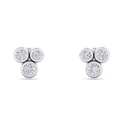 D Flawless Diamonds™ 1/5 Carat Diamond Bezel Set Three Stone Stud Earrings