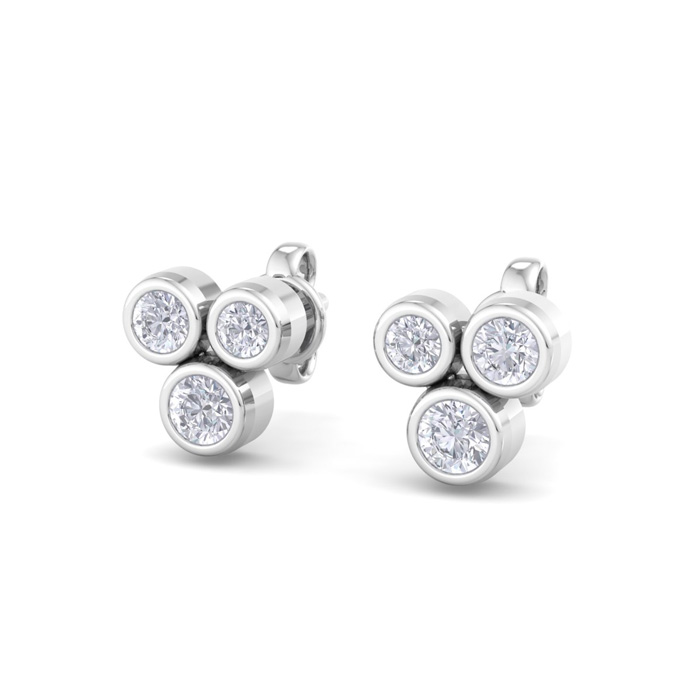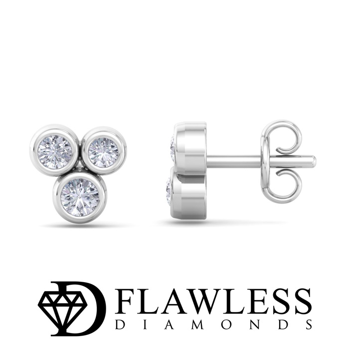 D Flawless Diamonds™ 1/5 Carat Diamond Bezel Set Three Stone Stud Earrings
