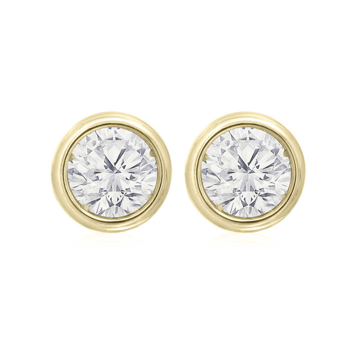1 Carat Bezel Set Lab Grown Diamond Stud Earrings In 14 Karat Yellow Gold