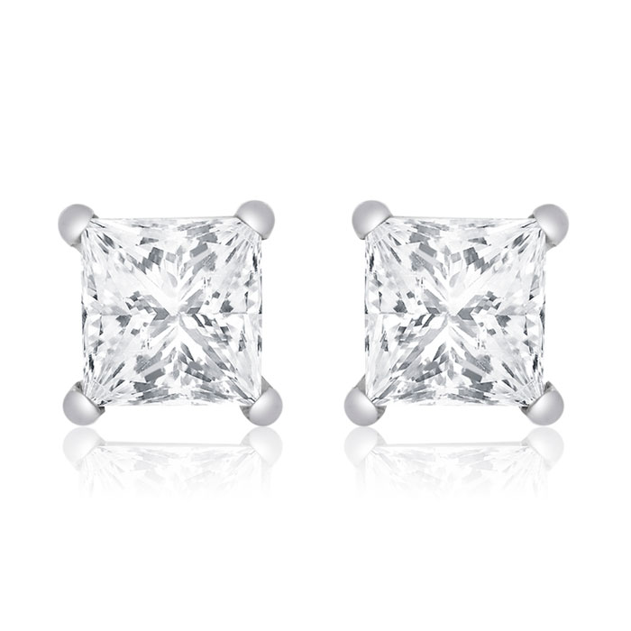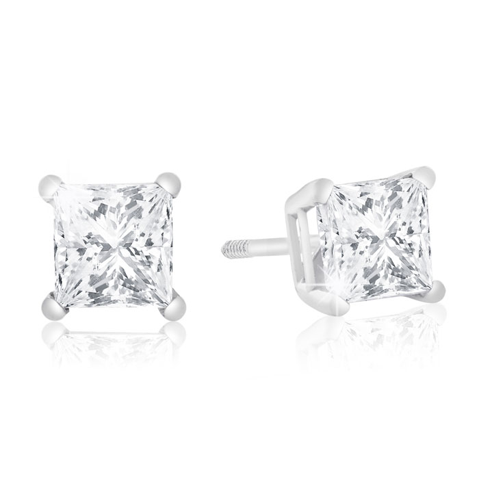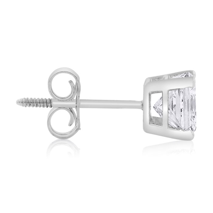 1 Carat Princess Cut Lab Grown Diamond Stud Earrings In 14 Karat White Gold