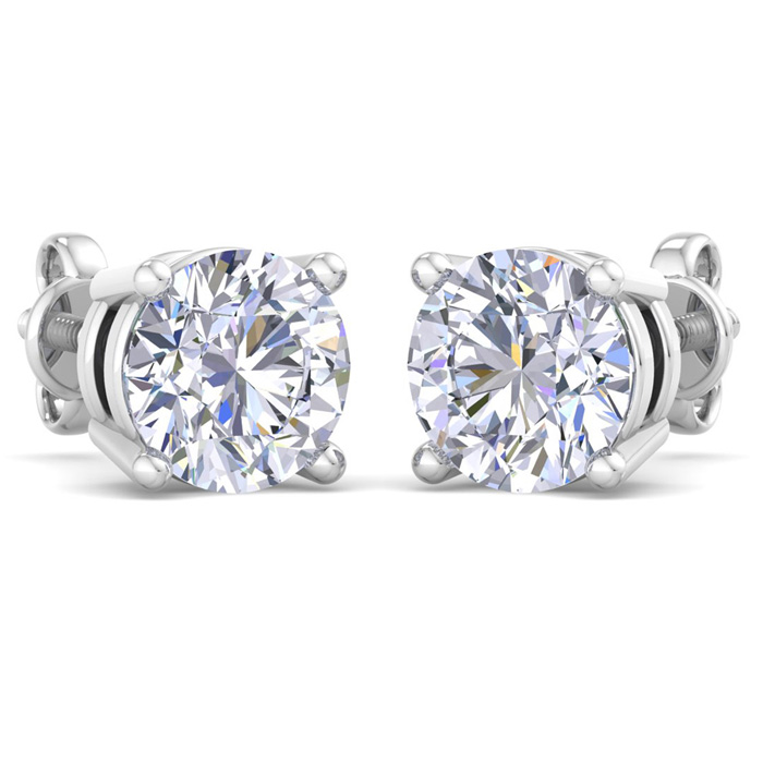 14 Carat Lab Grown Diamond Earrings In 14 Karat White Gold, Basket Setting
