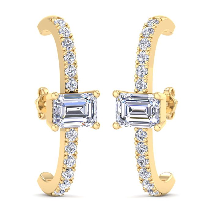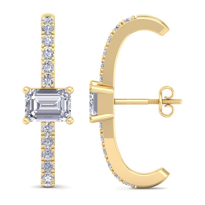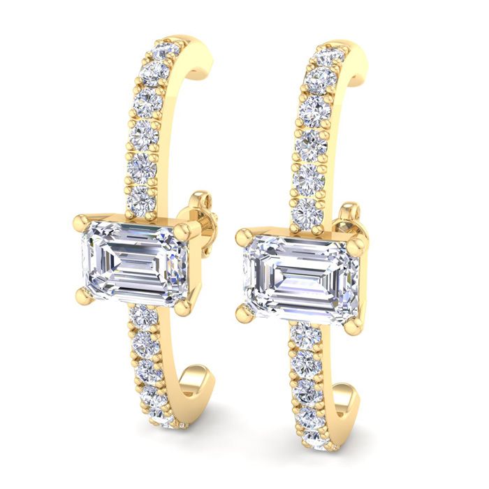 2 1/2 Carat Lab Grown Diamond Hoop Earrings In 14 Karat Yellow Gold, 1 Inch - Emerald
