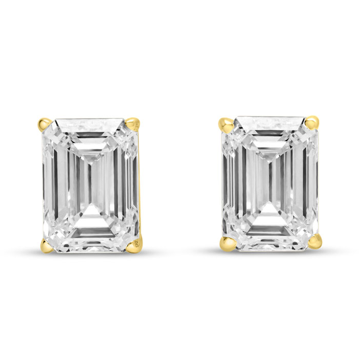 2 Carat Emerald Cut Lab Grown Diamond Earrings In 14 Karat Yellow Gold