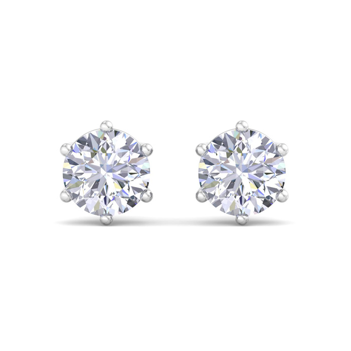 2 Carat Lab Grown Diamond Earrings In 14 Karat White Gold, 6-Prong Setting