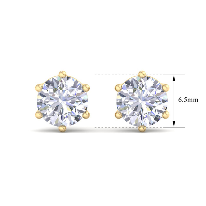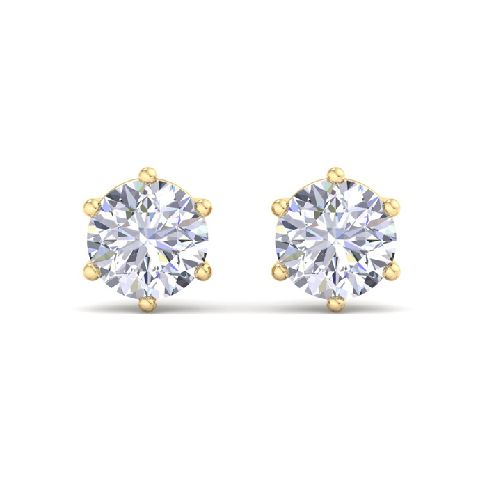 2 Carat Lab Grown Diamond Earrings In 14 Karat Yellow Gold, 6-Prong Setting