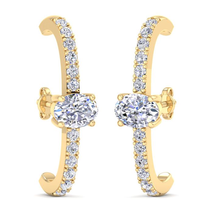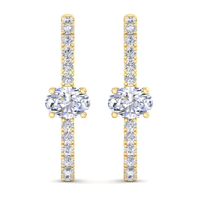 2 Carat Lab Grown Diamond Hoop Earrings In 14 Karat Yellow Gold, 1 Inch - Oval