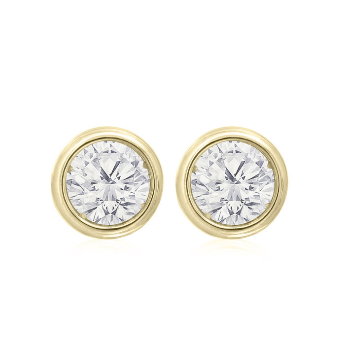 3/4 Carat Bezel Set Lab Grown Diamond Stud Earrings In 14 Karat Yellow Gold
