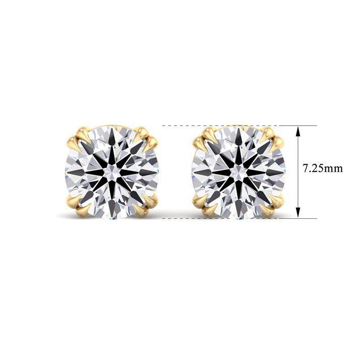 3 Carat Lab Grown Diamond Earrings In 14 Karat Yellow Gold, Double Prong Setting