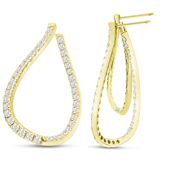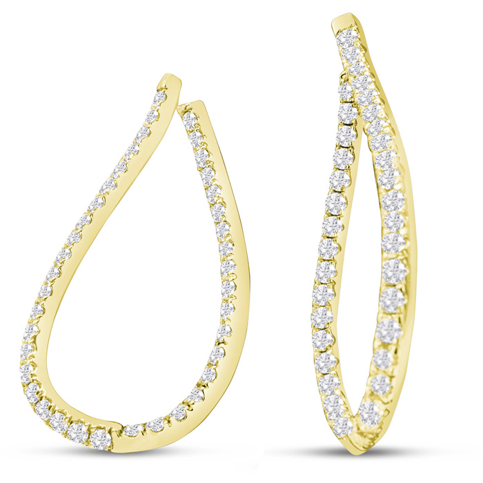 3 Carat Lab Grown Diamond Inside Out Twisted Earrings In 14 Karat Yellow Gold, 1 1/2 Inches