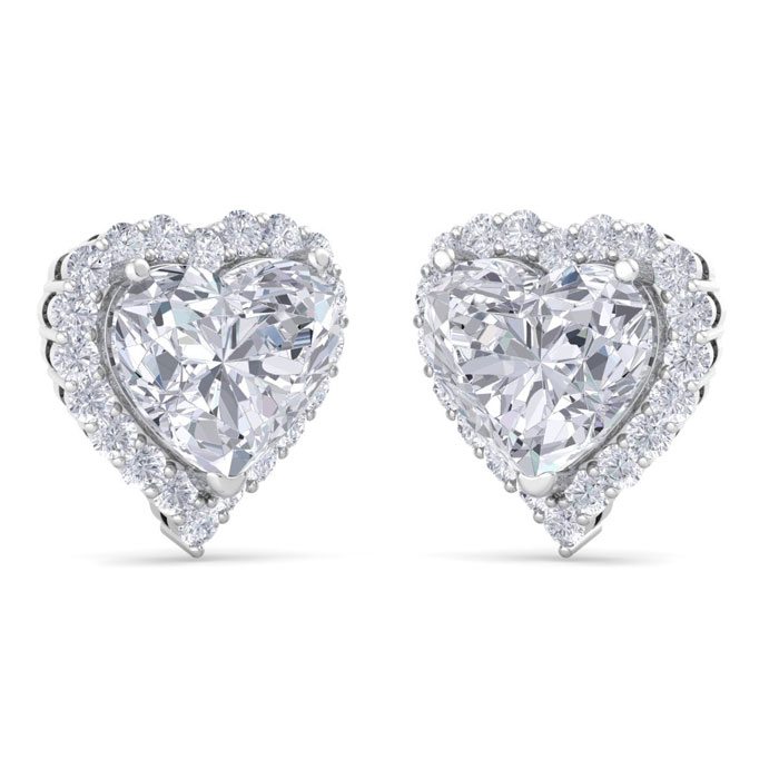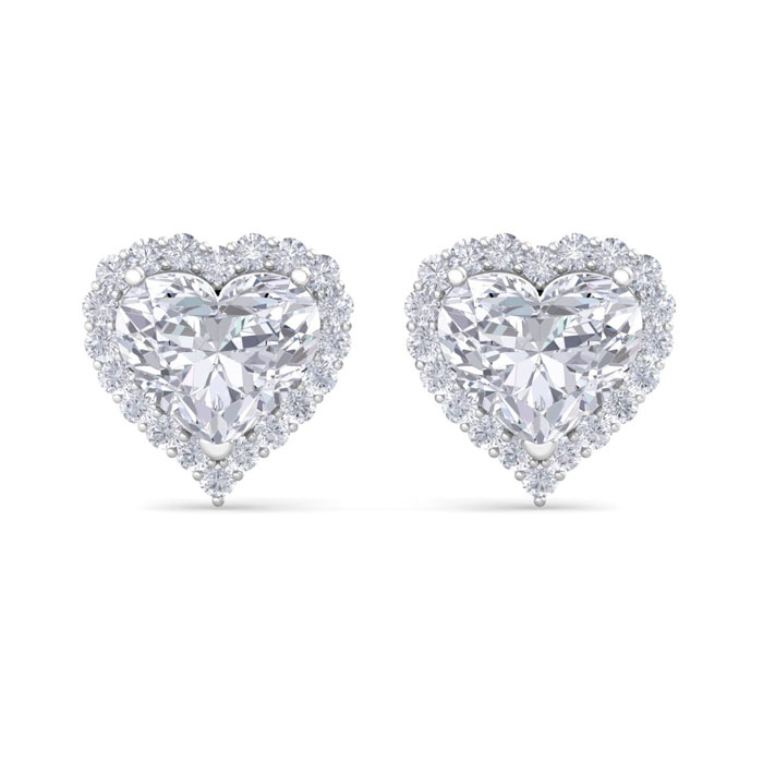 4 1/2 Carat Heart Shape Halo Lab Grown Diamond Stud Earrings In 14 Karat White Gold