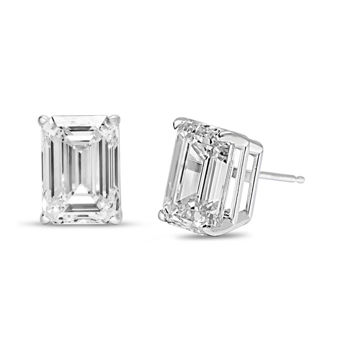 4 Carat Emerald Cut Lab Grown Diamond Earrings In 14 Karat White Gold