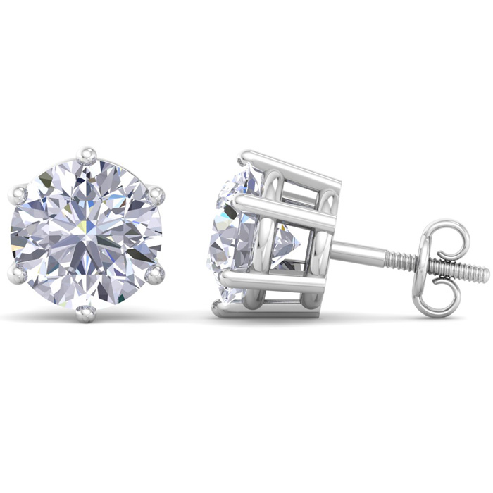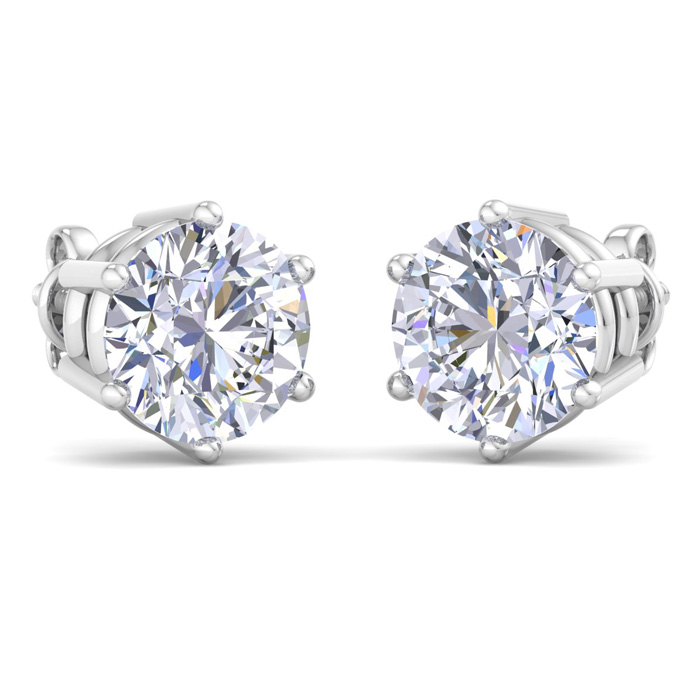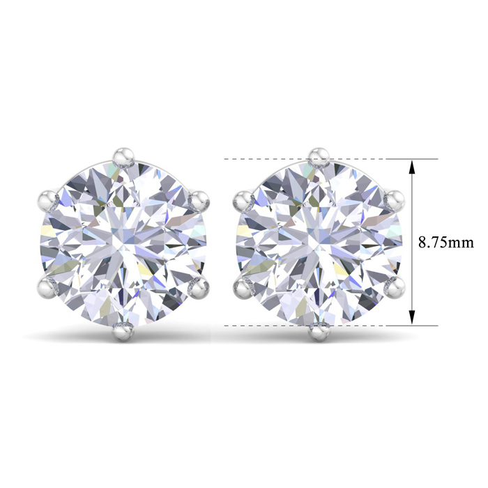 5 Carat Lab Grown Diamond Earrings In 14 Karat White Gold, 6-Prong Setting