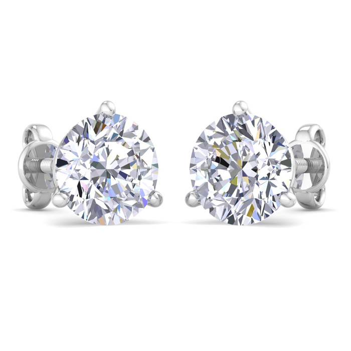 5 Carat Lab Grown Diamond Earrings In 14 Karat White Gold, Martini Setting