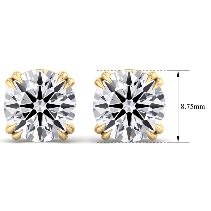 5 Carat Lab Grown Diamond Earrings In 14 Karat Yellow Gold, Double Prong Setting