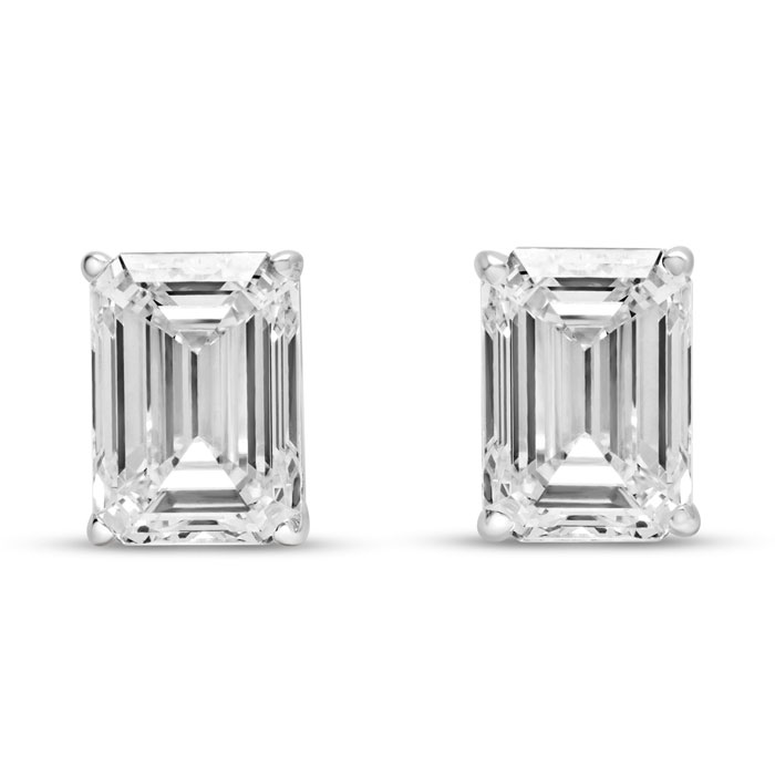 6 Carat Emerald Cut Lab Grown Diamond Earrings In 14 Karat White Gold