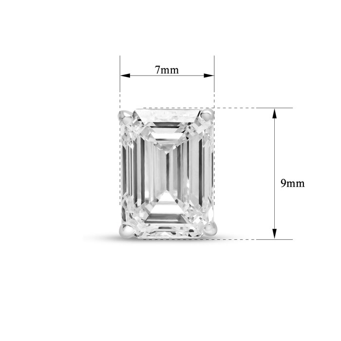 These lab grown diamond earrings feature two 3 carat emerald cut lab grown diamonds in G-H color, VS clarity. Total carat weight is 6 carats. These earrings are in 14 karat white gold and have secure screwbacks.