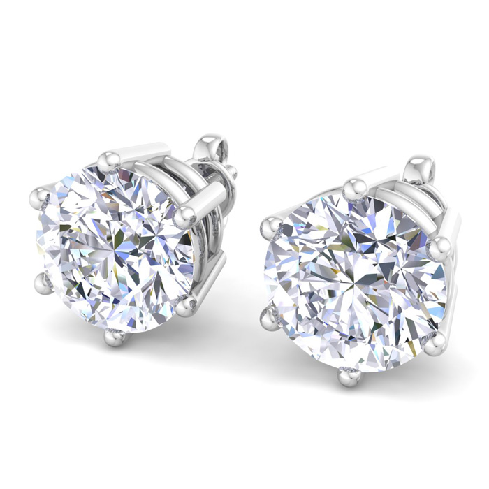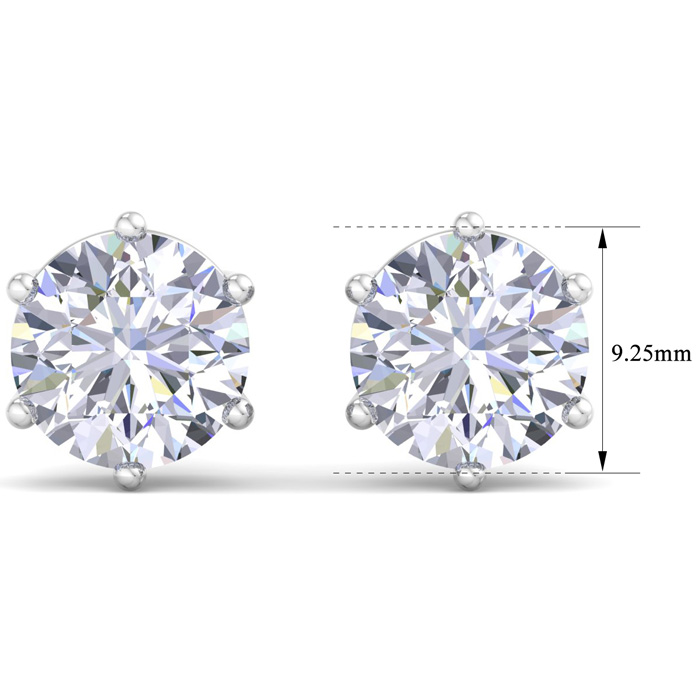 6 Carat Lab Grown Diamond Earrings In 14 Karat White Gold, 6-Prong Setting