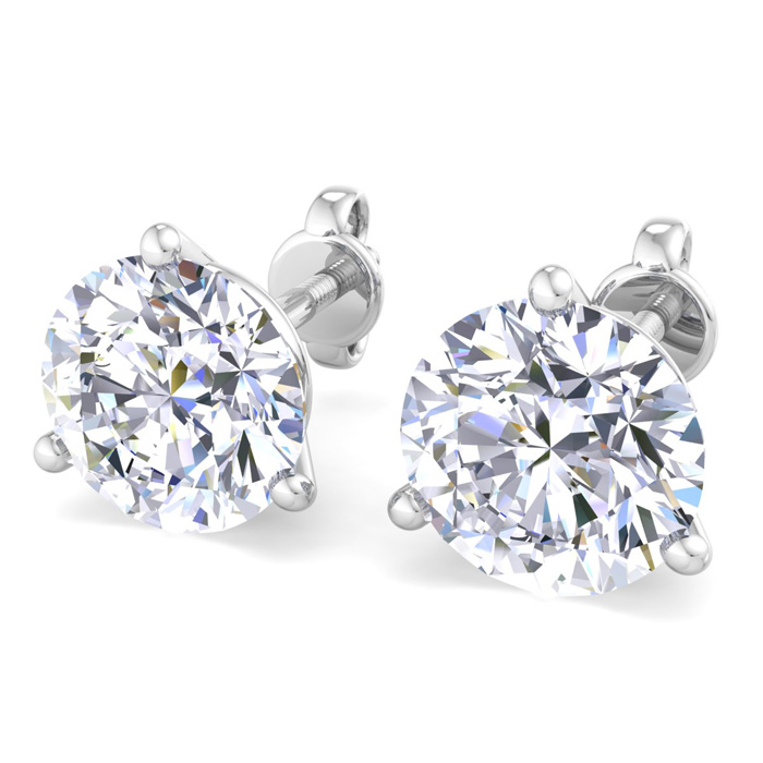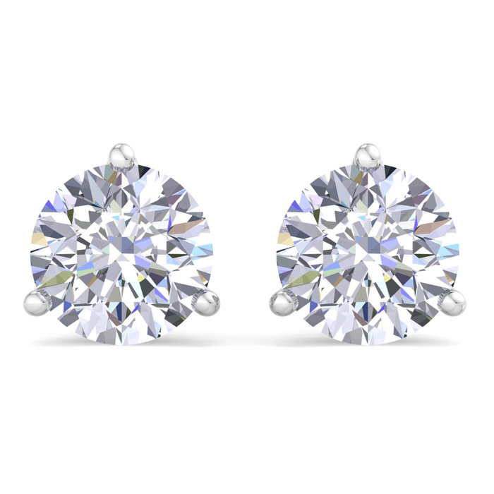 6 Carat Lab Grown Diamond Earrings In 14 Karat White Gold, Martini Setting