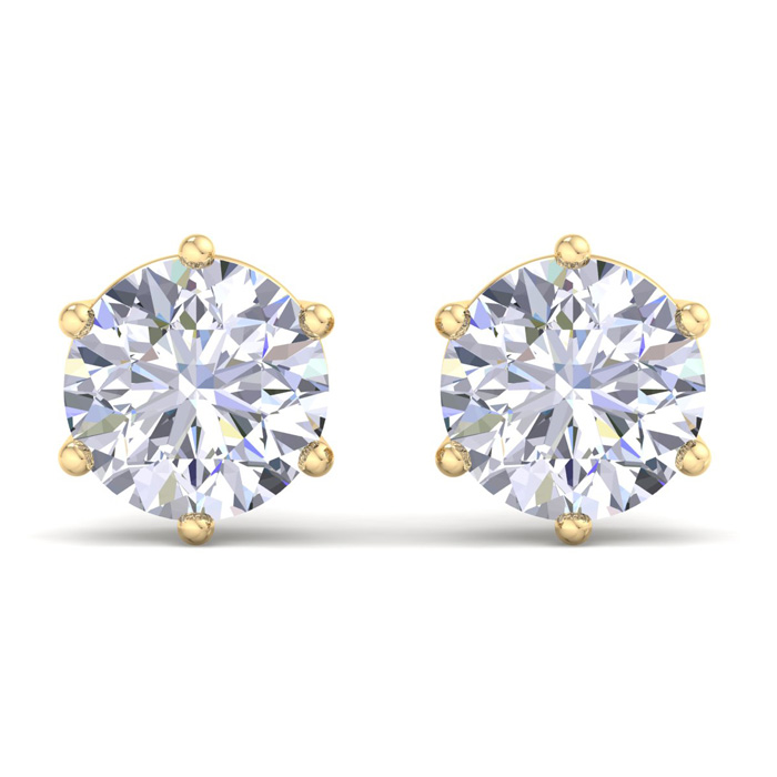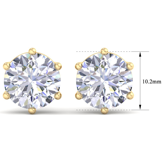 8 Carat Lab Grown Diamond Earrings In 14 Karat Yellow Gold, 6-Prong Setting
