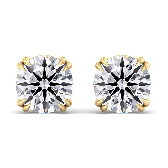 8 Carat Lab Grown Diamond Earrings In 14 Karat Yellow Gold, Double Prong Setting