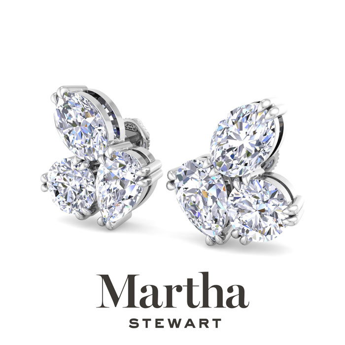 Showcasing class, style and timeless sophistication, the Martha Stewart fine jewelry collection is here to be celebrated. These Martha Stewart lab grown diamond earrings feature two pear, two round and two oval shape lab grown diamonds in G-H color, VS clarity. Total carat weight is 3 carats. These earrings are in Sterling Silver and have post with screw backs. These earrings are set in the signature Martha Stewart double-prong setting and are 1/2 inch wide! Whether worn for a special event or to enhance everyday elegance, these earrings are sure to become cherished heirlooms. Martha Stewart’s attention to detail and dedication to quality shine through in every piece, making this collection a celebration of refined craftsmanship and timeless beauty.