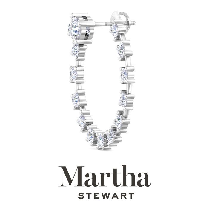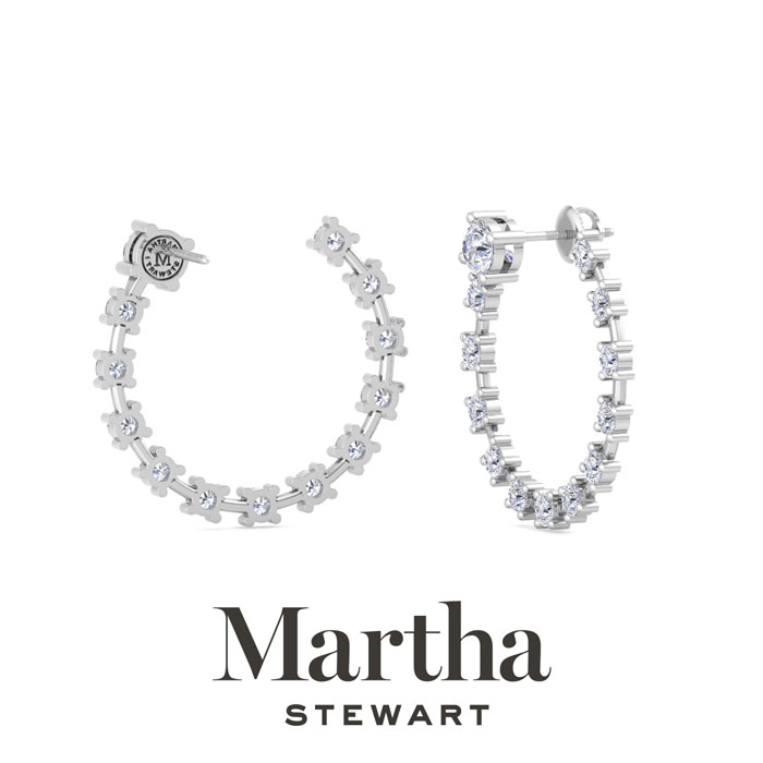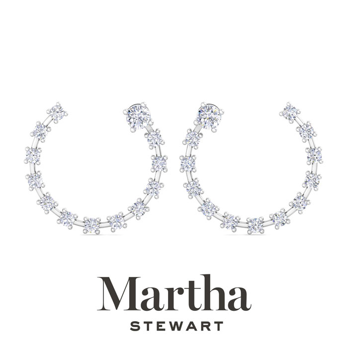 Showcasing class, style and timeless sophistication, the Martha Stewart fine jewelry collection is here to be celebrated. These Martha Stewart lab grown diamond earrings feature 26 round shape lab grown diamonds in G-H color, VS clarity. Total carat weight is 3 carats. These earrings are in 14 karat white gold and have post with screw backs. These earrings are 1 inch in diameter! Whether worn for a special event or to enhance everyday elegance, these earrings are sure to become cherished heirlooms. Martha Stewart’s attention to detail and dedication to quality shine through in every piece, making this collection a celebration of refined craftsmanship and timeless beauty.