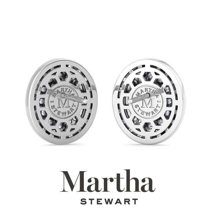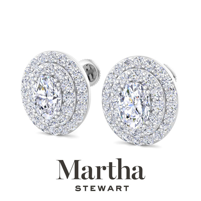 Showcasing class, style and timeless sophistication, the Martha Stewart fine jewelry collection is here to be celebrated. These Martha Stewart lab grown diamond earrings feature 64 round shape lab grown diamonds in G-H color, VS clarity, and two 1 carat oval shape lab grown diamonds. Total carat weight is 4 carats. These earrings are in 14 karat white gold and have post with screw backs. These earrings are 1/2 inch in diameter! Whether worn for a special event or to enhance everyday elegance, these earrings are sure to become cherished heirlooms. Martha Stewart’s attention to detail and dedication to quality shine through in every piece, making this collection a celebration of refined craftsmanship and timeless beauty.